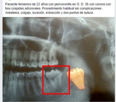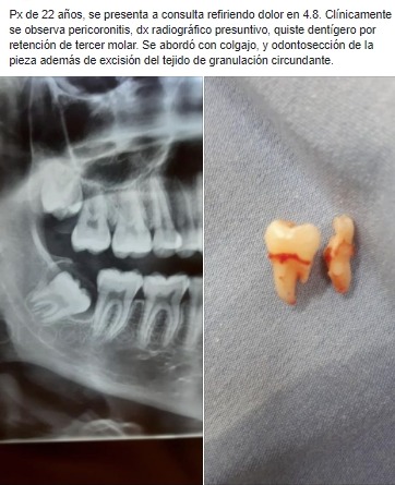 Pacente con presencia de tercer molar en proceso de erupcion dental, (pericoronitis)
